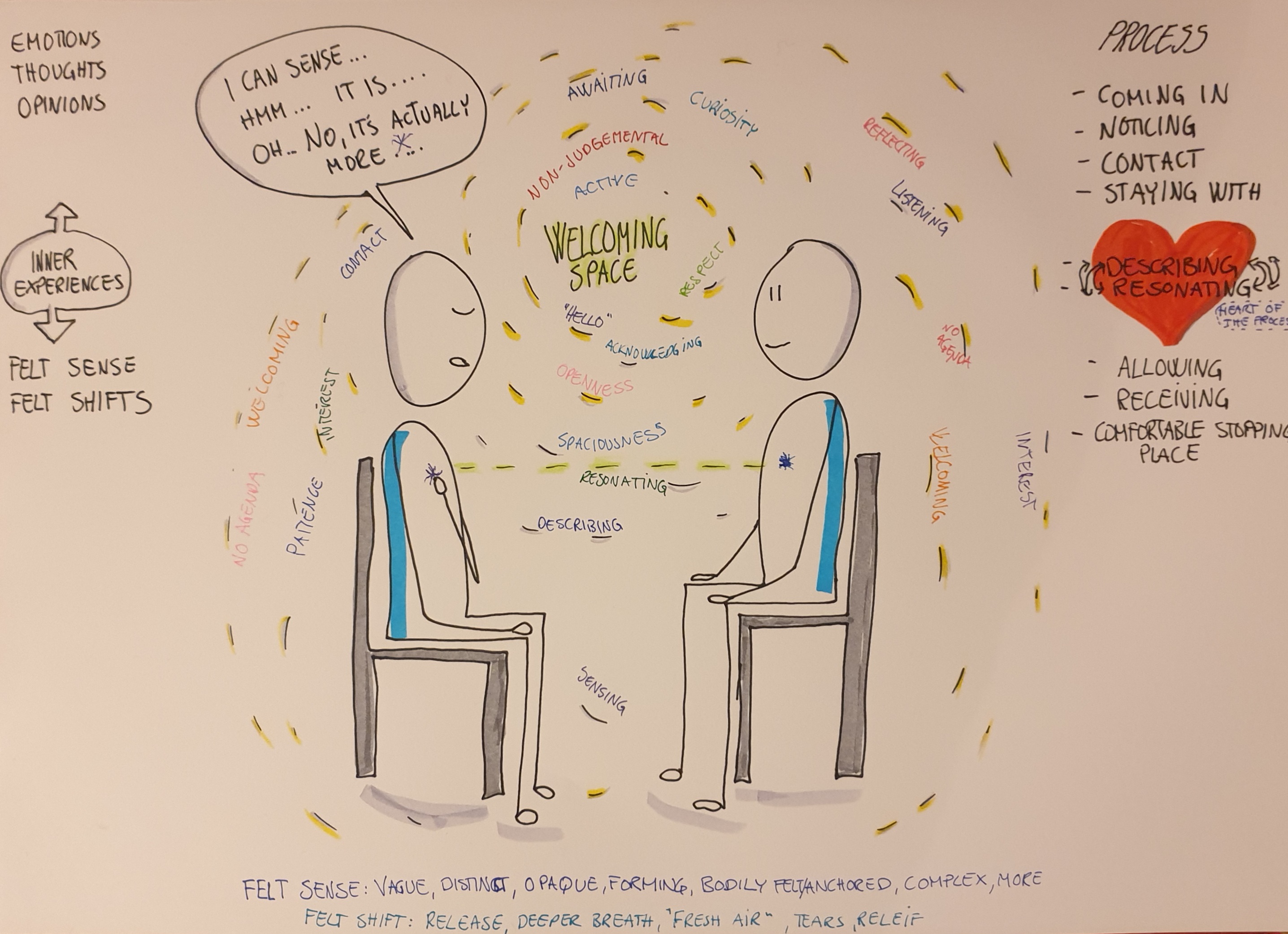 Here is one of my last sketches that attempts to capture some of the Felt Sensing and With-Sensing process that I am teaching in my Felt Sensing and With-Sensing Training (I have a feeling it will develop a bit still).