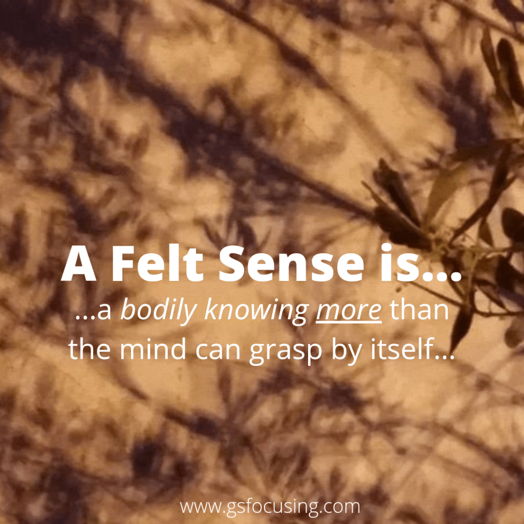 Gendlin’s term Felt Sense was coined in the sixties to help people become aware of a felt experience we had no language to speak of in Western society yet. It was discovered as the crucial ingredient that made change happen (in therapy), and firstly described as an “inner referent”, “just outside awareness”.